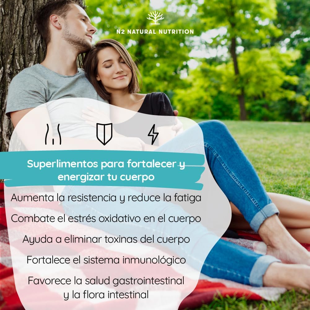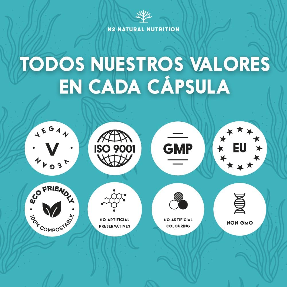 An exceptional super food: The Chlorella Spirulina supplement from N2 Natural Nutrition has two seaweeds that are considered superfoods. Chlorella is the food with more chlorophyll that exists and contains all the essential amino acids. In addition, it contains iron, provides energy and nutrients.