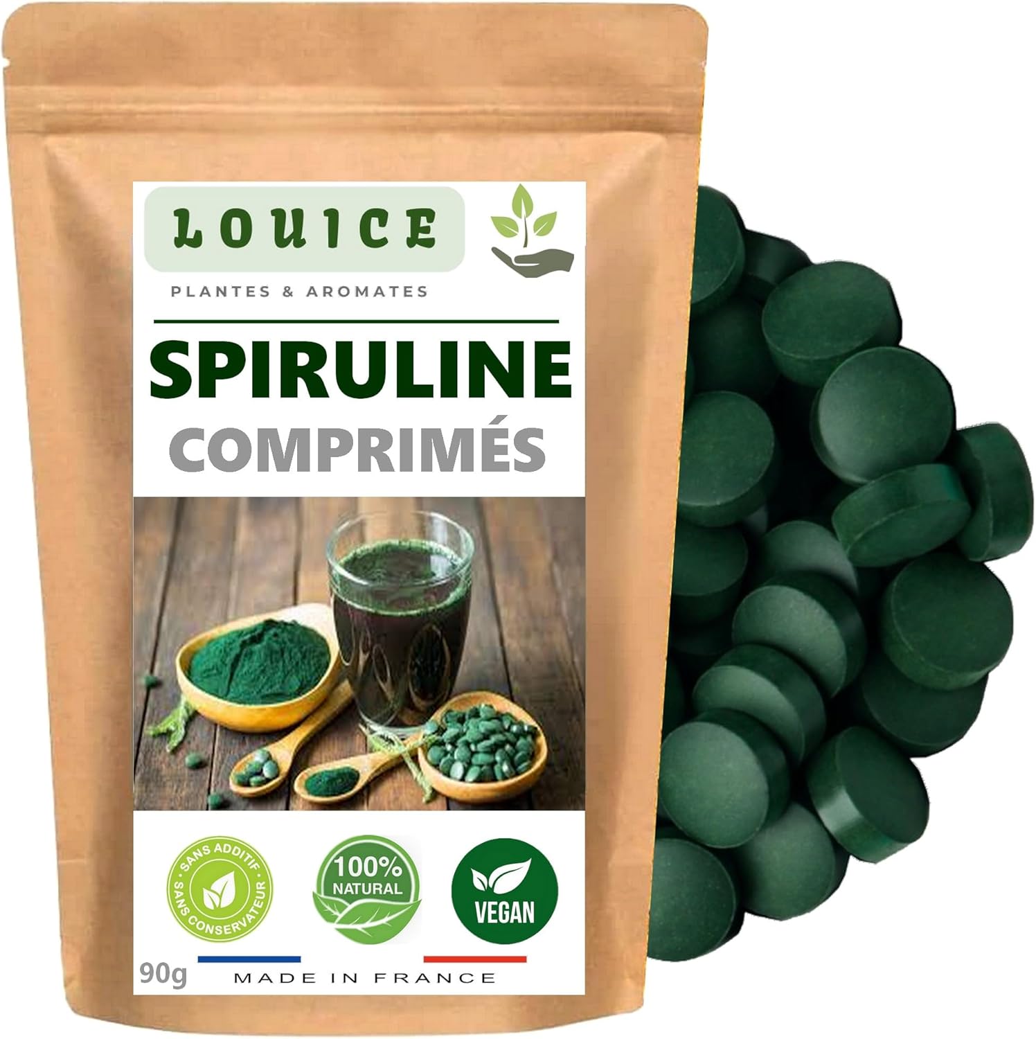 Spirulina Tablets 90g – 360 Natural Tablets – Source of Vitality and Nutrients – Ideal for Active, Vegan & Balanced Lifestyle – Resealable Bag – Brand LOUICE