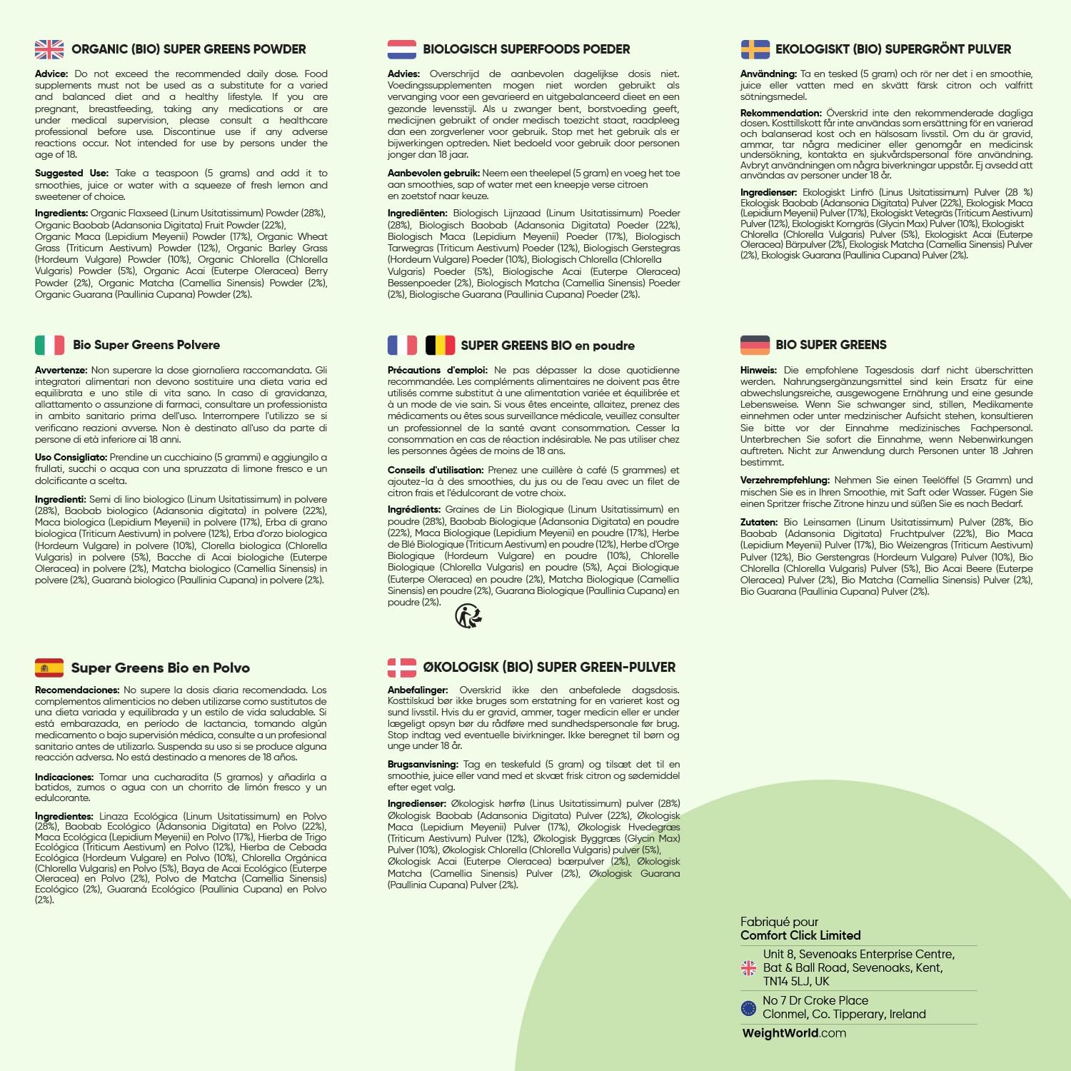 MULTI-PURPOSE POWDER – Rich in nutrients and vitamins, green powder is consumed as a sugar-free drink, mixing with smoothies, water or soups. Formulated from 9 superfood greens, it also fits perfectly into energy shakes or culinary creations to add a subtle nutritional touch.