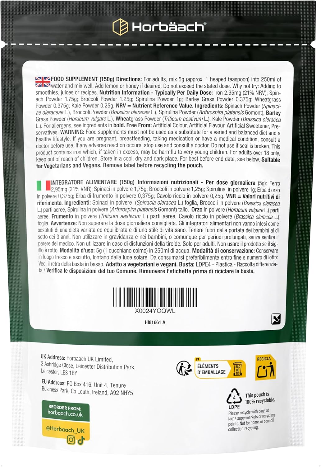 SUITABLE FOR: The Horbaach Supergreen blend is vegan and vegetarian and contains no artificial colours or preservatives.