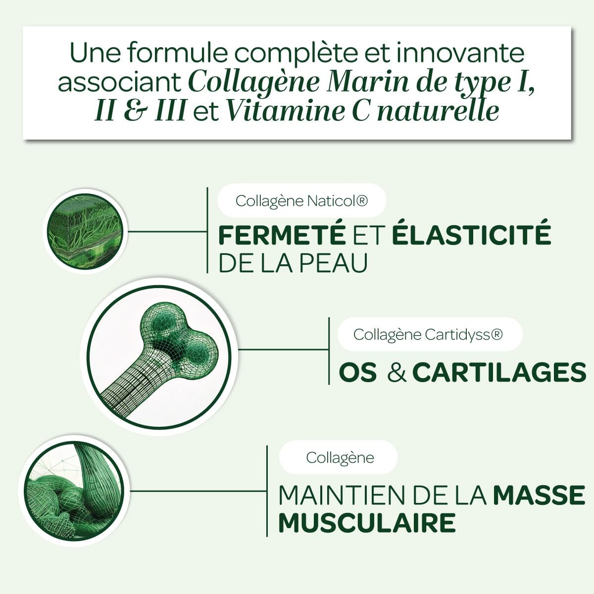 Skin tightness and bone protection and cartilage ✦ PROVEN EFFICIENCY! Following a clinical study on TYPE I and III Naticol Collagen will take care of your skin. Cartidyss Collagen Type II will take care of your bones and cartilage.