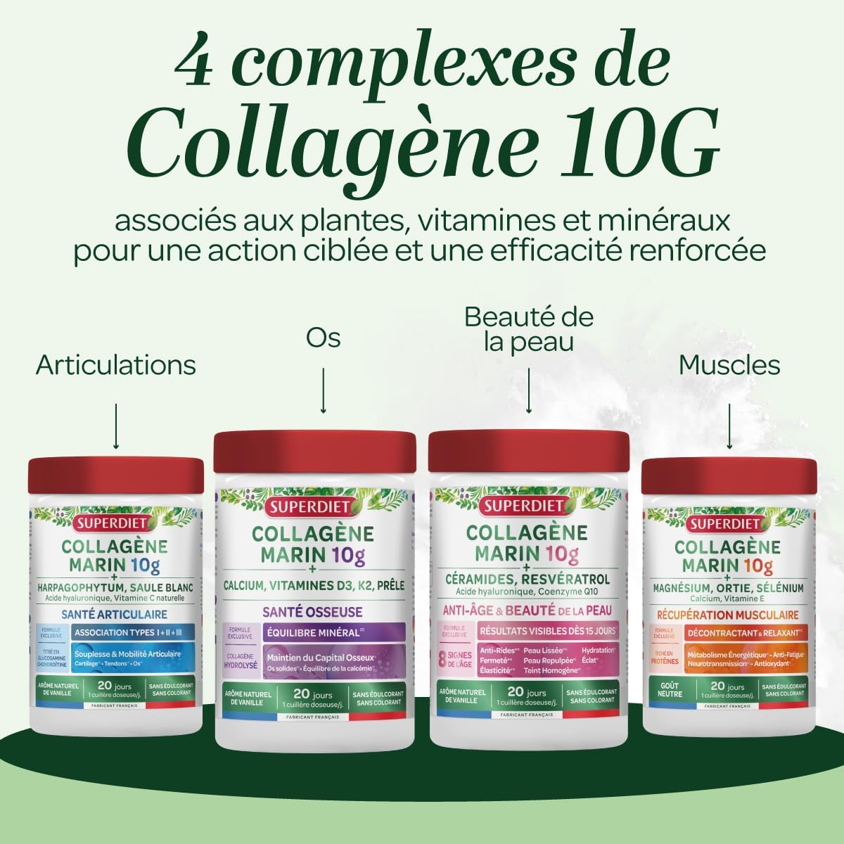 100% NATURAL PROMISE ✦ SUPERDIET has developed for you a unique formula, a synergy of action between 100% marine, hydrolyzed collagen and natural vitamin C formulated and manufactured in France in our workshops in Hauts-de-France.