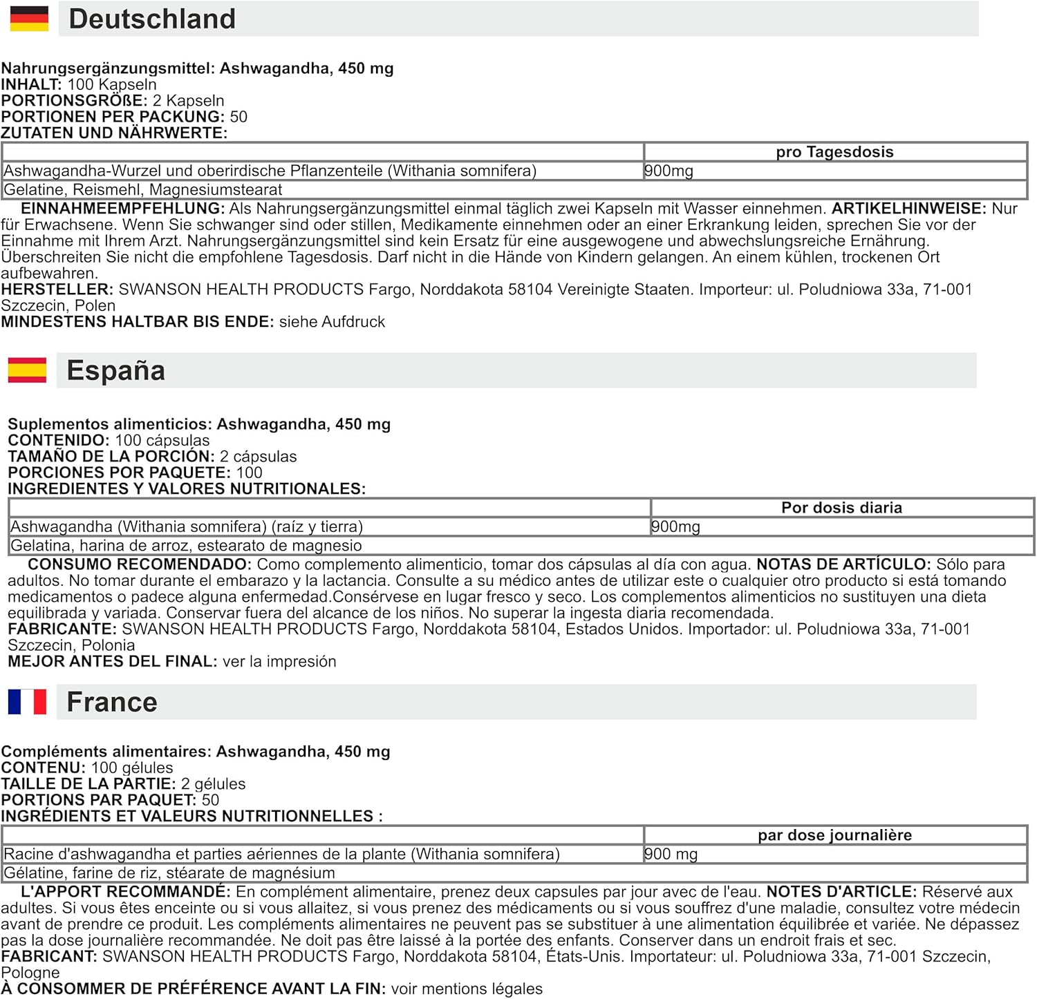 Swanson – Ashwagandha Extract, 450mg | Reduces Stress & Boosts Vitality – 100 Capsules