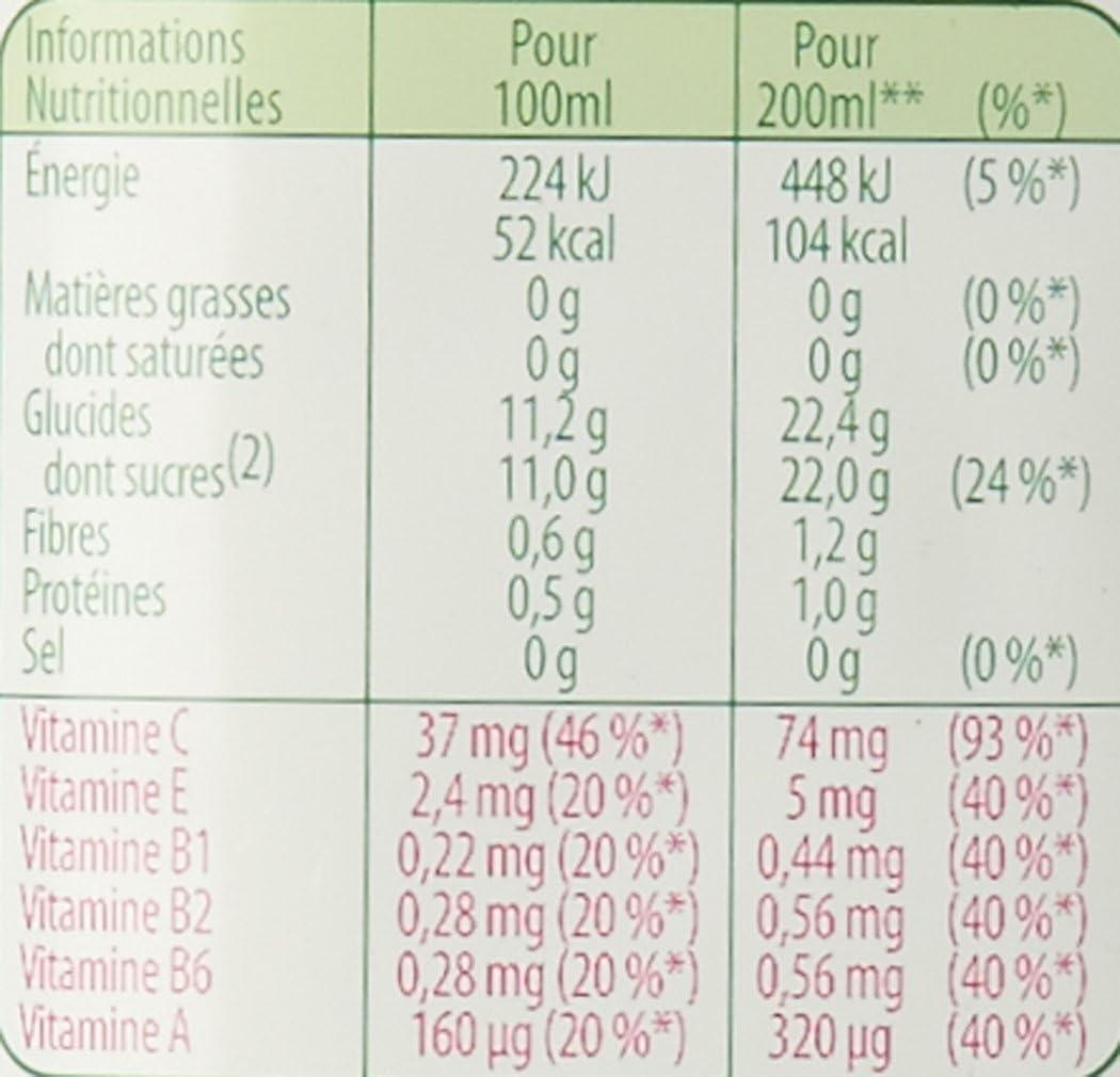 Juices with a balanced and delicious taste! Our juices are free of colours, preservatives and no added sugars. Healthy benefits Our juices bring you vitamins and minerals! Did you know? Enjoy the benefits of vitamins in our juices as part of a varied and balanced diet and a healthy lifestyle. 1 glass of 200 ml = at least 40% of the daily reference intake of 6 vitamins (2) Contains sugars naturally present in fruits. Like all fruit juices. (3) Like all fruit juices. (4) Vitamins C, B2 and B6 help reduce fatigue. Vitamins C and A contribute to the normal functioning of our immune system.