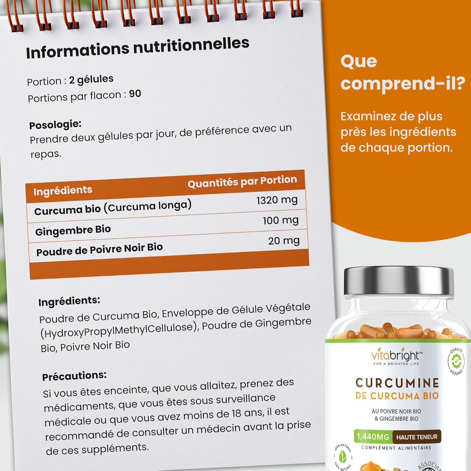 A POWERFUL DOSE OF WELLNESS – VitaBright Organic Turmeric Capsules provide 1,440mg of turmeric per serving, enriched with ginger and black pepper for enhanced absorption. Known for its support in inflammation management, this formula is free from additives or impurities, and certified organic. Each bottle of curcumin provides a 3 month supply to support your wellbeing.