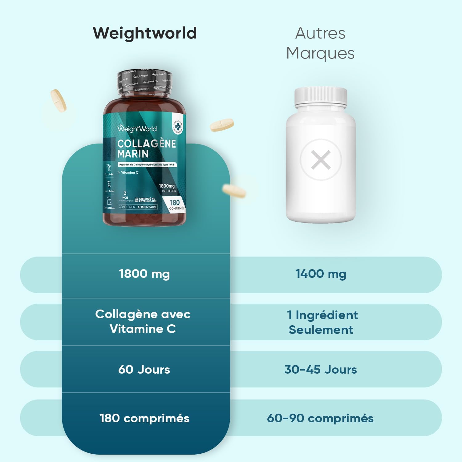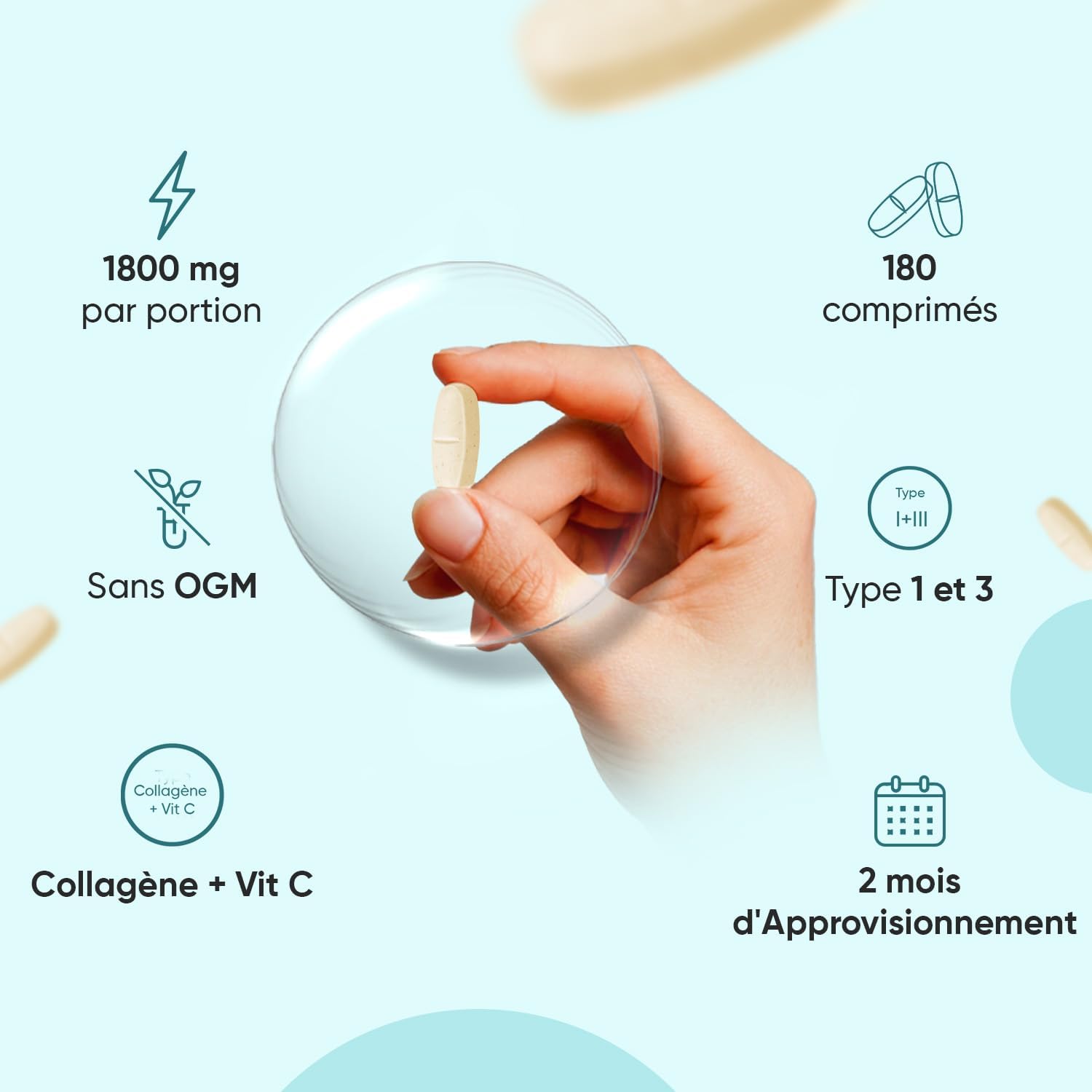 Type 1 & 3 Hydrolyzed Marine Collagen with Vitamin C, 1800mg per Serving, 180 Tablets, 2 Months Stock, Alternative to Powder and Capsules – Marine Collagen Tablets, Gluten and Lactose Free