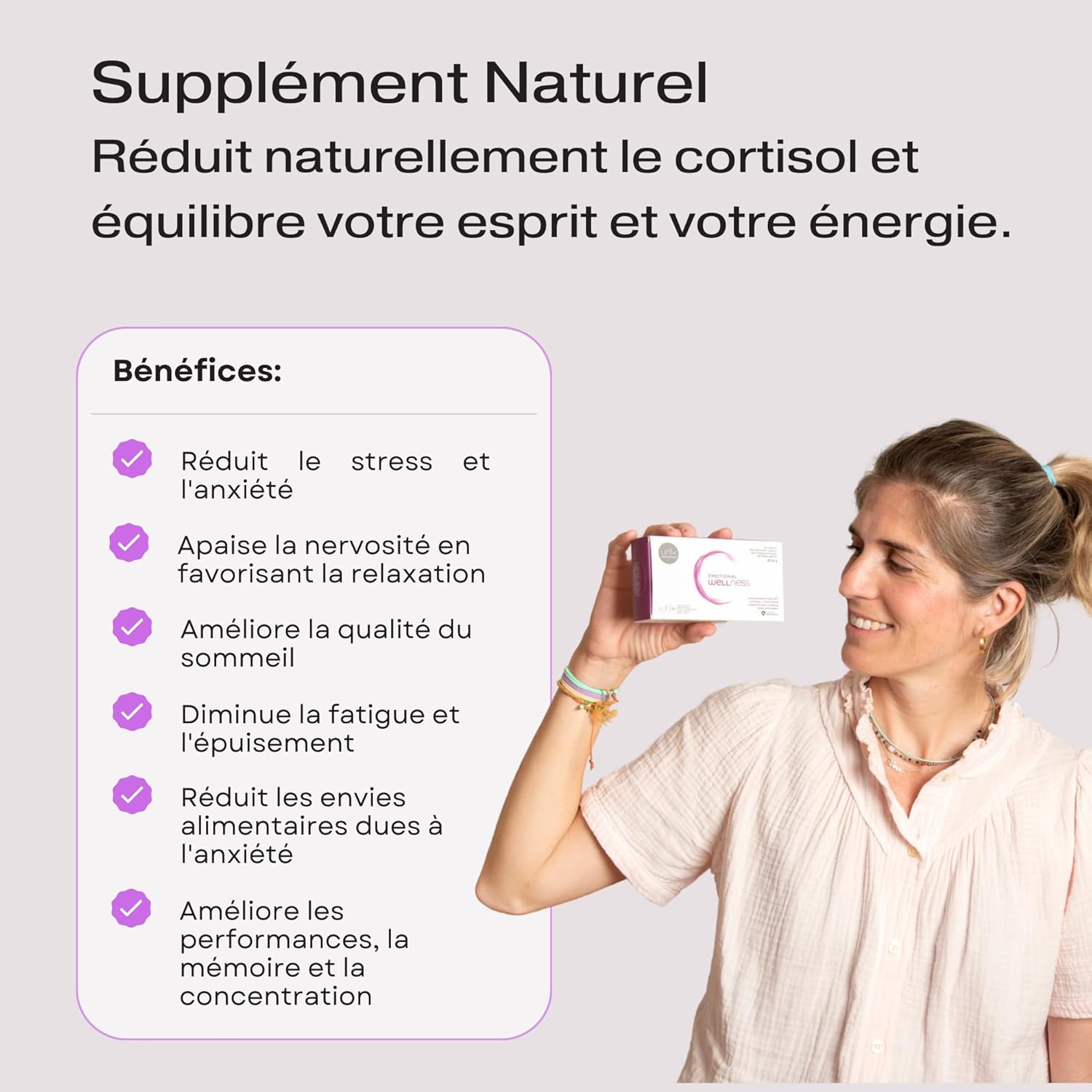Complément alimentaire formulé avec des ingrédients naturels de haute qualité, spécialement sélectionnés pour aider à maintenir l’équilibre émotionnel.