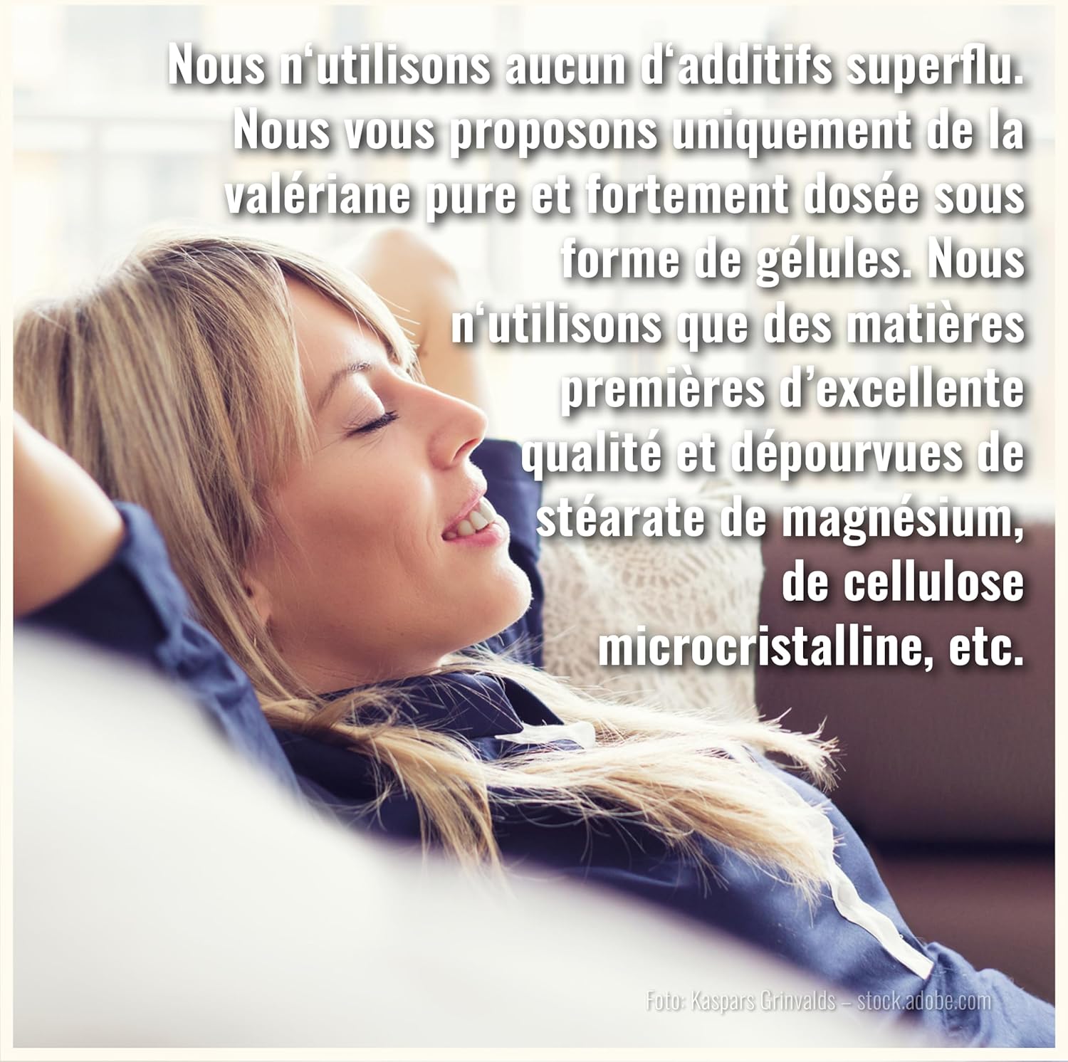 NO ADDITIVES: We do not use any unnecessary additives. We only offer pure and highly dosed valerian in the form of capsules. We use only high-quality raw materials that are free of magnesium stearate, microcrystalline cellulose etc.