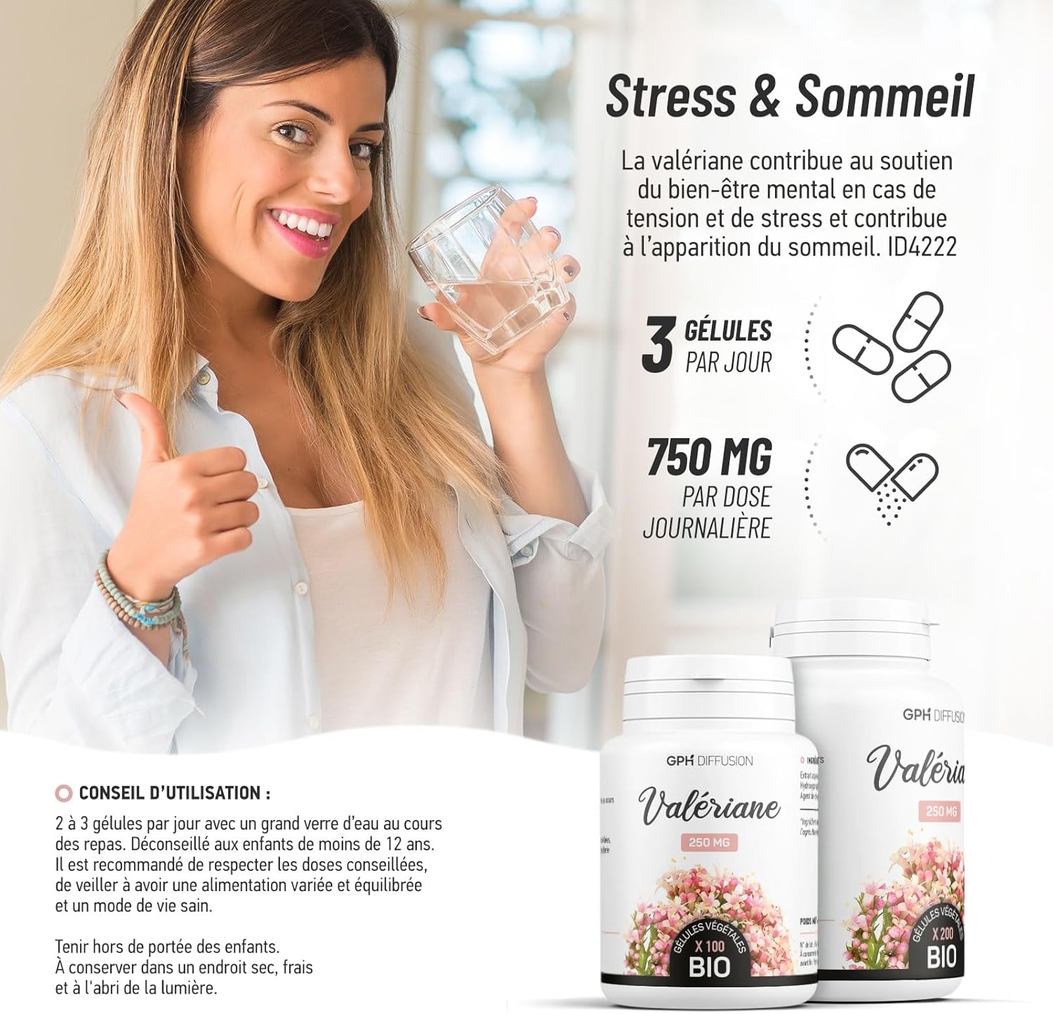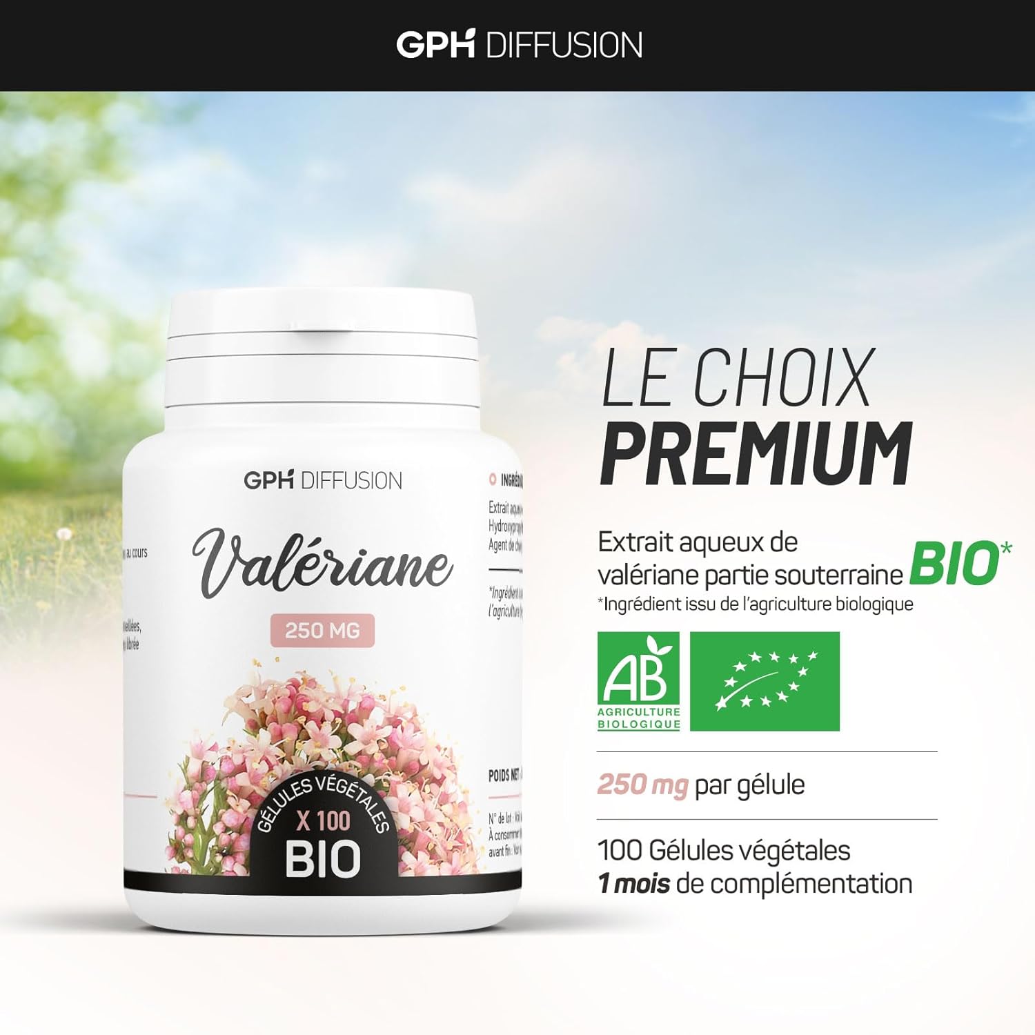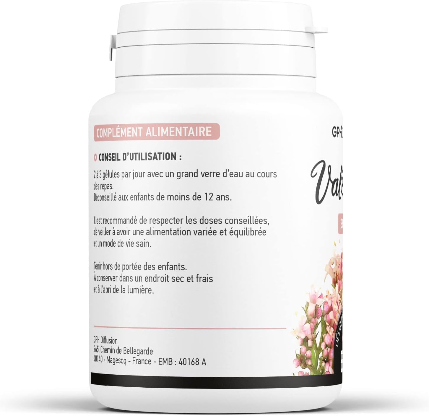Les racines, les rhizomes et les stolons de Valériane sont récoltés durant le stade de dormance de la plante, en automne. Aucun herbicide, fongicide ou encore pesticide n’est utilisé pour traiter les plantes, elles reçoivent seulement de l’engrais issu de restes de maïs. Les parties sous-terraines sont ensuite lavées, puis séchées durant plusieurs heures afin d’être transformées en poudre. Cette dernière est finalement encapsulée en France, dans le Sud-Ouest.