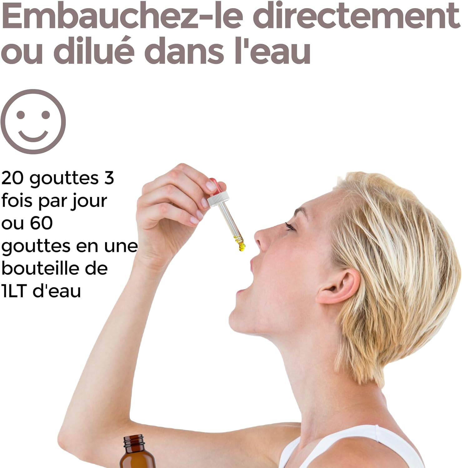 SIMPLE AND FLEXIBLE INSTRUCTION: Take 20 drops 3 times a day directly in the mouth or diluted in a glass of water. For relaxing, continuous hydration, mix 60 drops in a liter of water, shake well and drink throughout the day