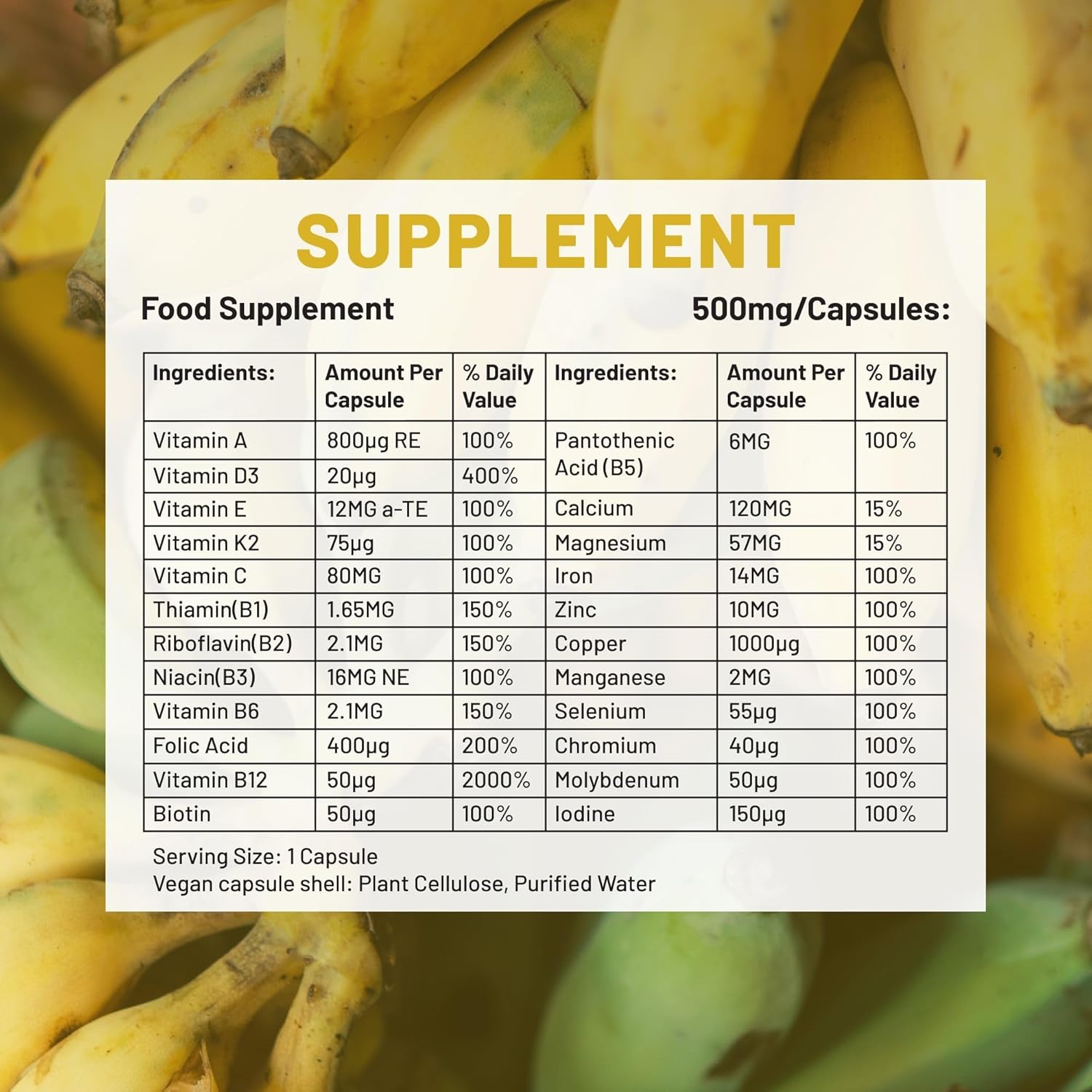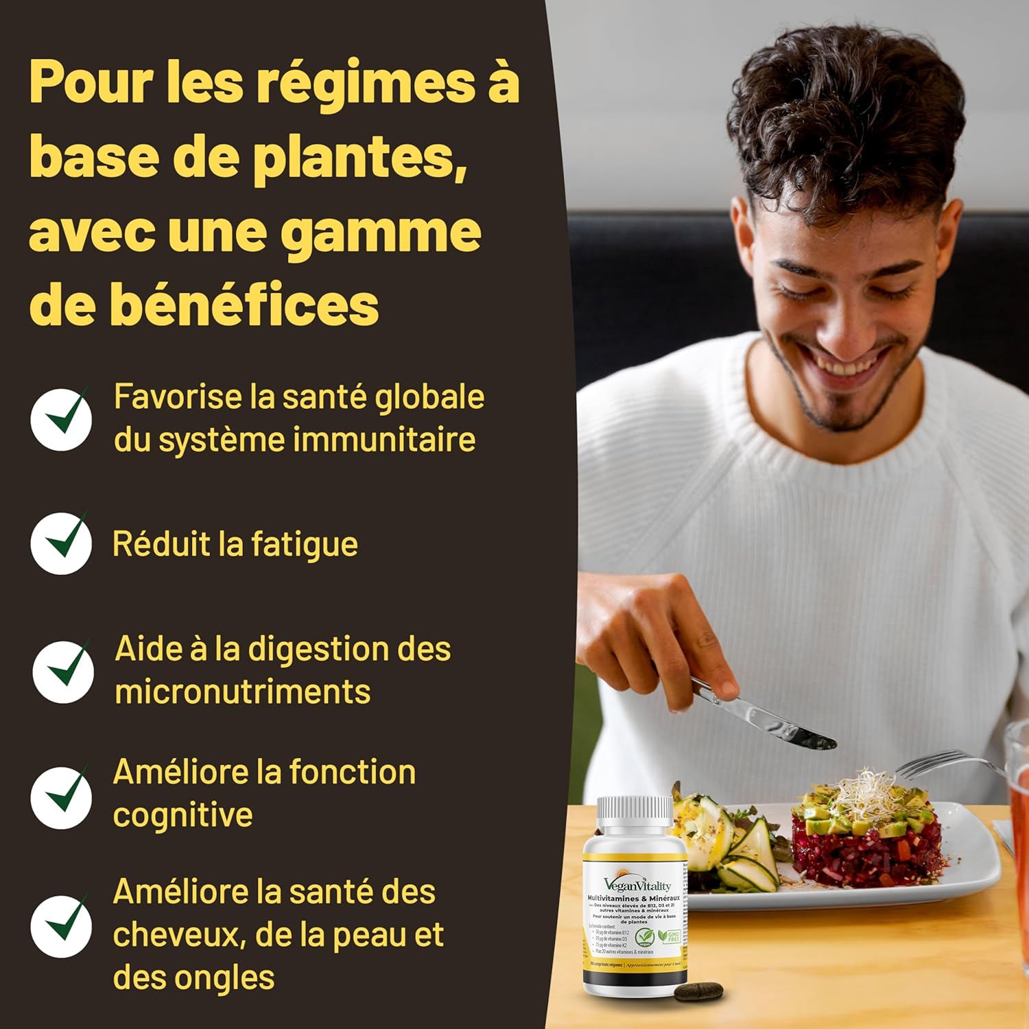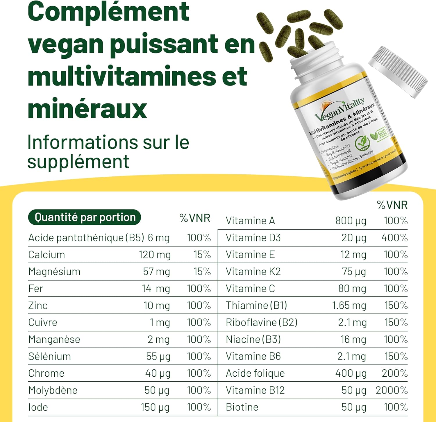 REINFORCED MULTIVITAMIN – Our Vegan Vitality Multi Vitamin provides a set of benefits to invigorate your energies and strengthen your immune system. Our multivitamins with iron dietary supplement offer a balanced set of nutrients; a daily pill to prevent deficiencies. These vegan vitamins also contain vitamin B12, vitamin E, vitamin K2 and 19 other minerals.