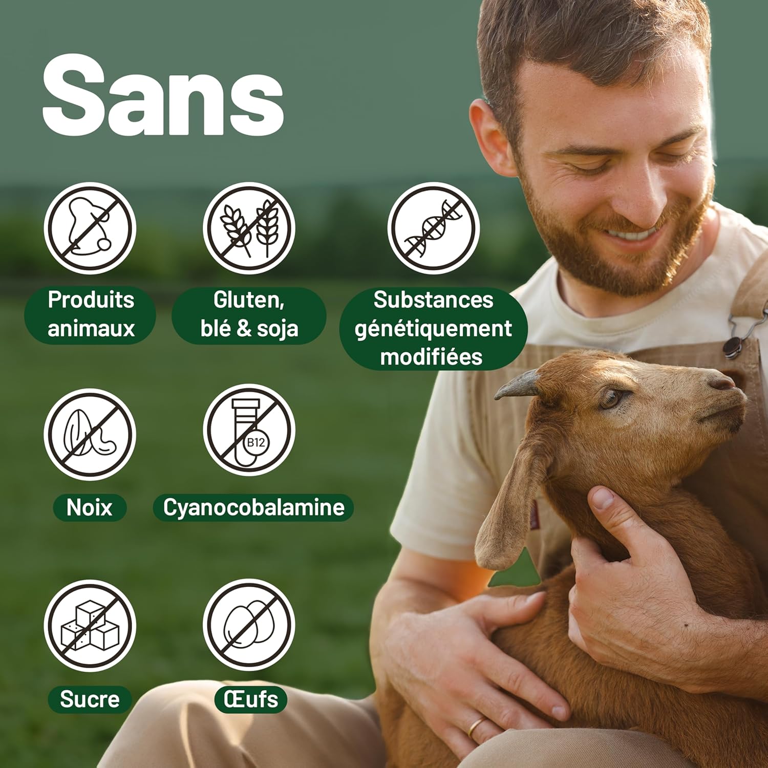 VITAMIN WITHOUT SUGAR, GLUTEN, wheat, nuts, soya, egg, GMO substances and animal products. Our vegan supplements are also Cyanocobalamin free; we only use Methylcobalamin for our source of vegan B12, the most organic form of organic vitamin B12 available. In addition, all Vegan Vitality products are inspected by independent laboratories that guarantee quality and safety.