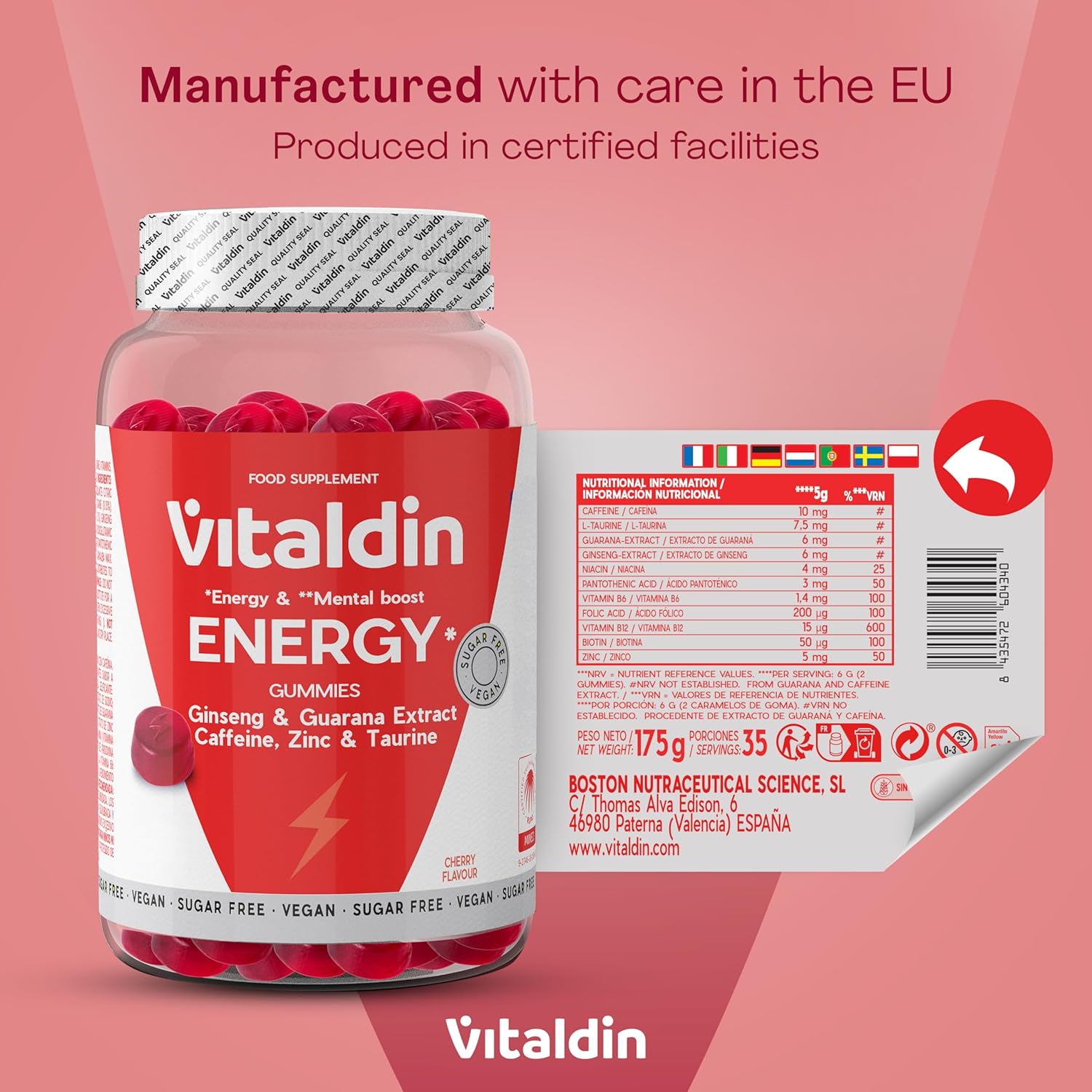NATURAL & VEGAN ENERGY FORMULA – Sweets made with natural extracts of ginseng and guarana, supplemented with caffeine and taurine, to provide a sustained energy boost without animal derived ingredients