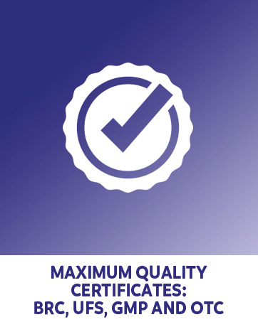 COMMITTED TO QUALITY: We carry out a rigorous and demanding quality control, as evidenced by the various certifications of the highest level of our factory, audited by independent and internationally recognized companies: BRC, IFS, GMP and OTC.