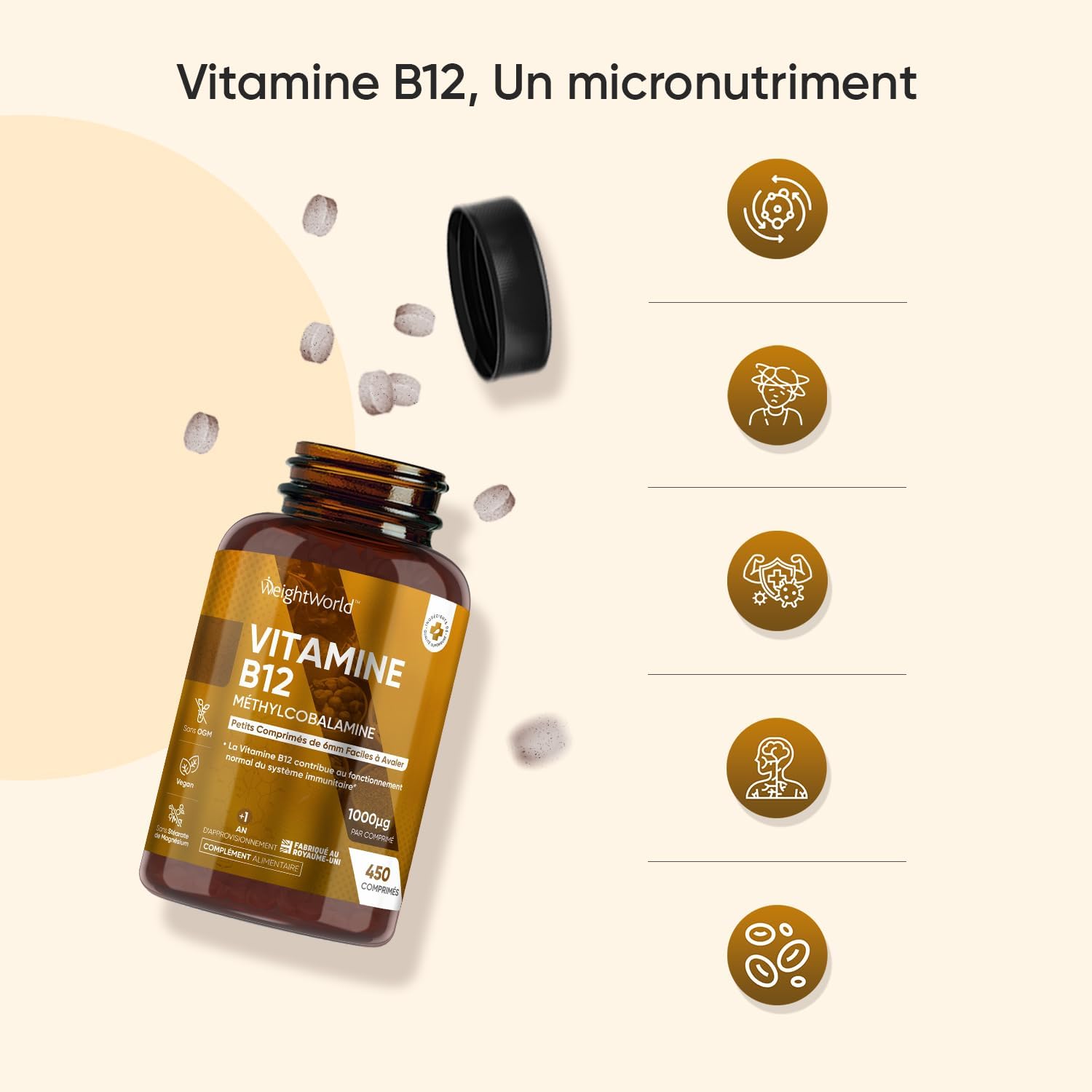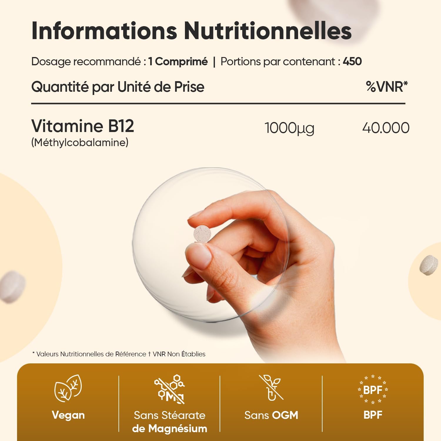 Vitamin B12 Vegan 1000mcg, 450 Micro Tablets Methylcobalamin Bioavailable – Vitamin B12 contributes to normal energy metabolism & normal nervous system function (EFSA)