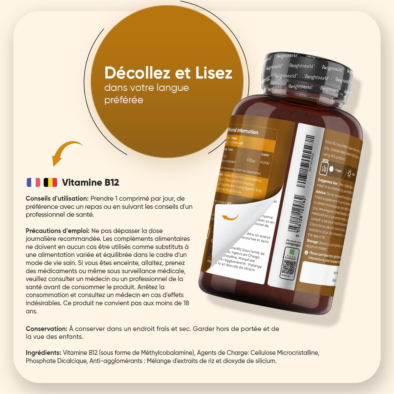 Vitamin B12 Tablets – Each vial of vitamin B12 contains 1000 μg of vitamin B12 (as Methylcobalamin) per tablet, with sufficient amount for more than 12 months of intake. Practical and easy to incorporate into the daily routine, the benefits of this vitamin for adults in tablets are fully appreciated.