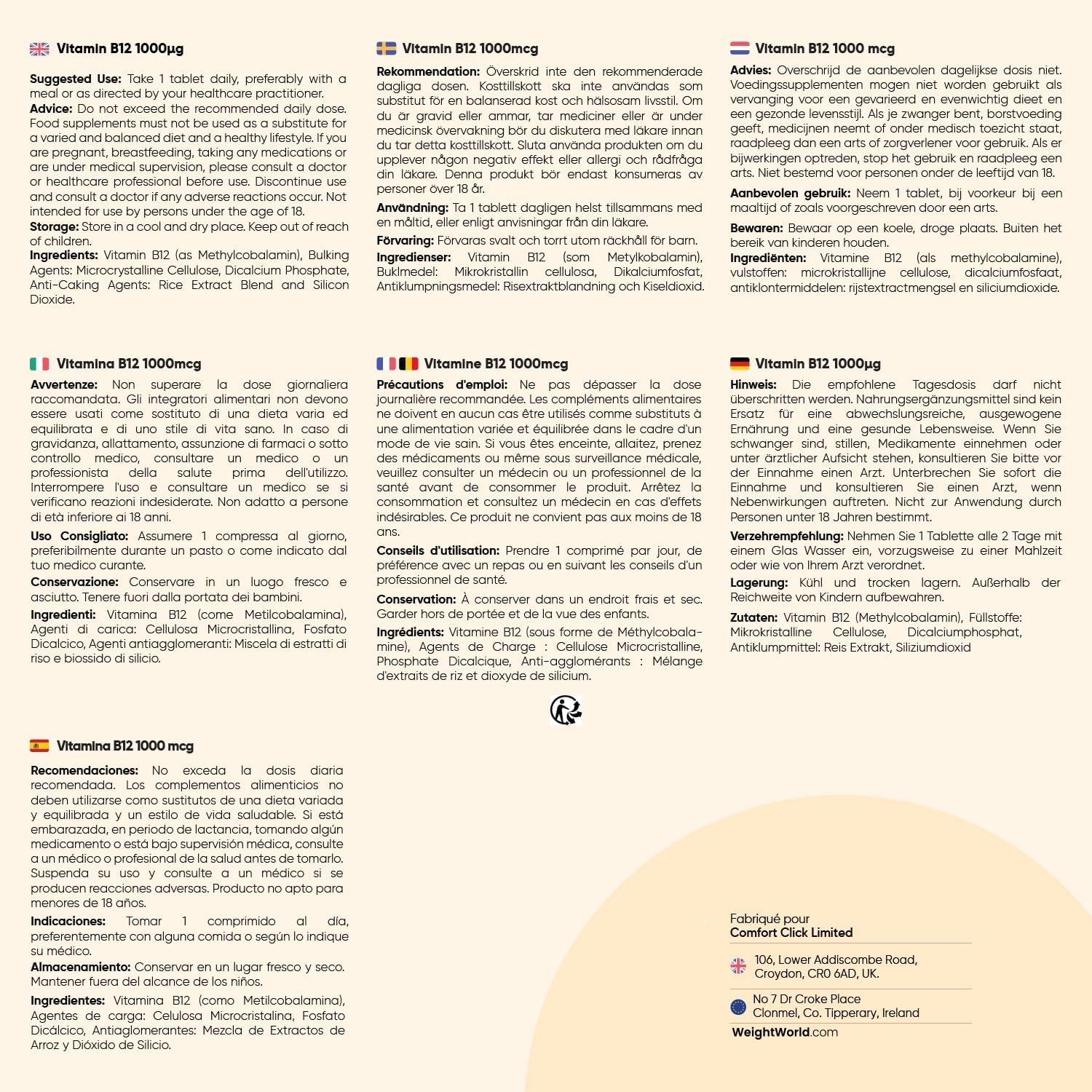 Be the first to review “Vitamin B12 Vegan 1000mcg, 450 Micro Tablets Methylcobalamin Bioavailable – Vitamin B12 contributes to normal energy metabolism & normal nervous system function (EFSA)” Cancel reply