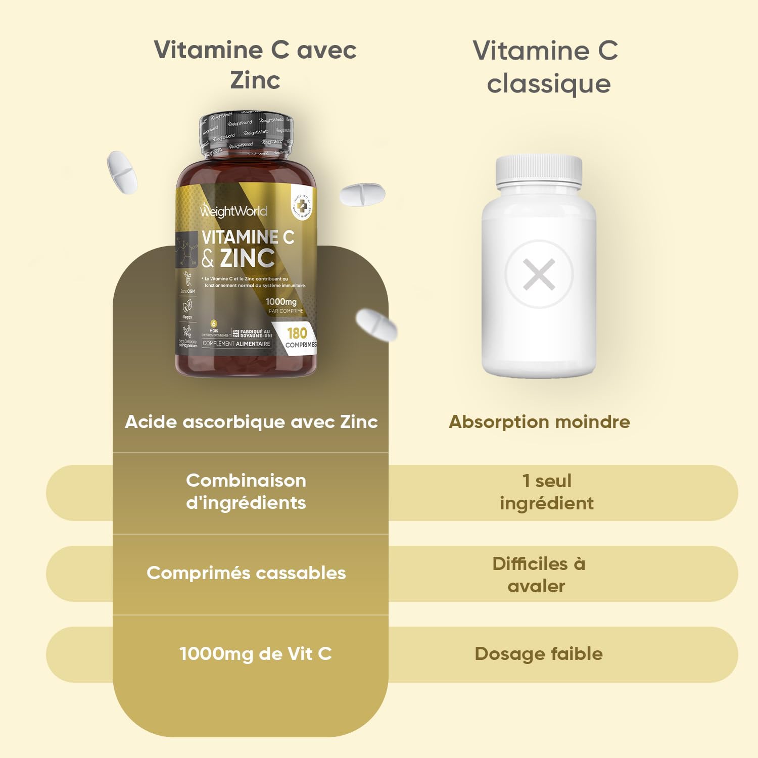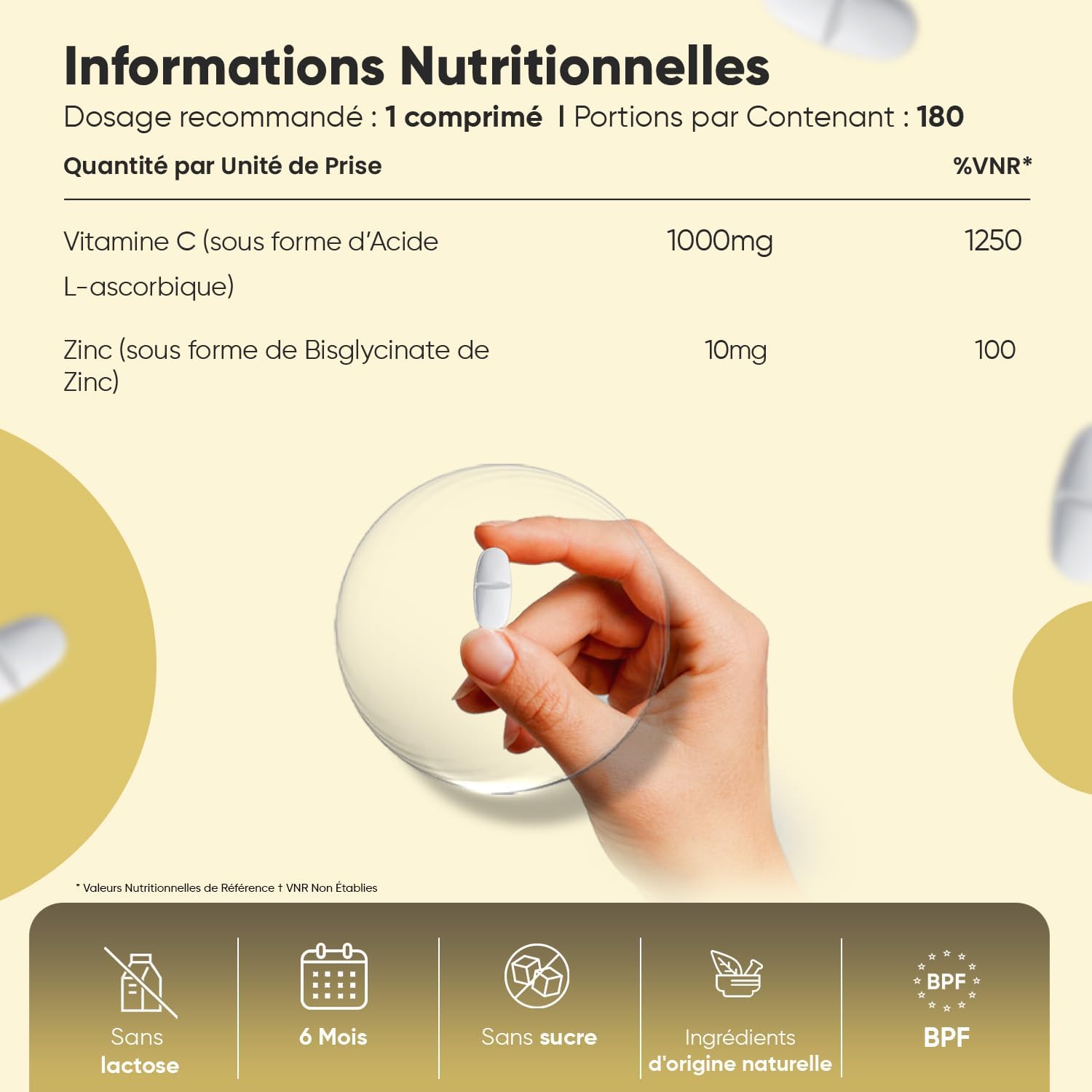 Combination of ingredients – The addition of zinc is the most of these 1000mg vitamin c breakable tablets. Indeed, the combination of vitamin c zinc allows synergy, but also access to more properties. Unlike other vit c formulas (such as liposomal vitamin c or vitamin c acerola) that contain only one ingredient, this one is 2-in-1.