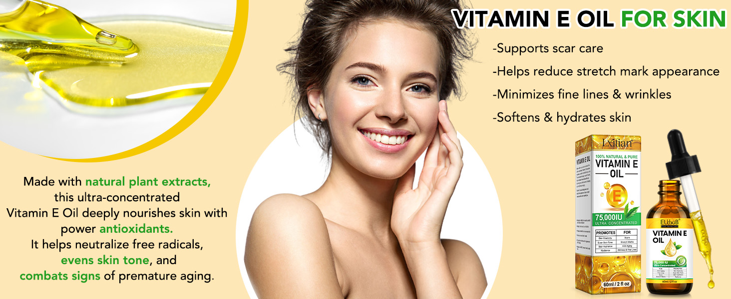 Ultimate Skin Protection: Powerful Vitamin E Oil (75,000 IU) helps fight against free radicals and external aggressions. Find all the benefits of several oils in one bottle: long-lasting strength and protection, cleansing and moisturizing properties. Vitamin E oil protects the skin from external aggressions and promotes a more youthful and radiant complexion. It neutralizes harmful free radicals, prevents damage and enhances the skin’s natural radiance