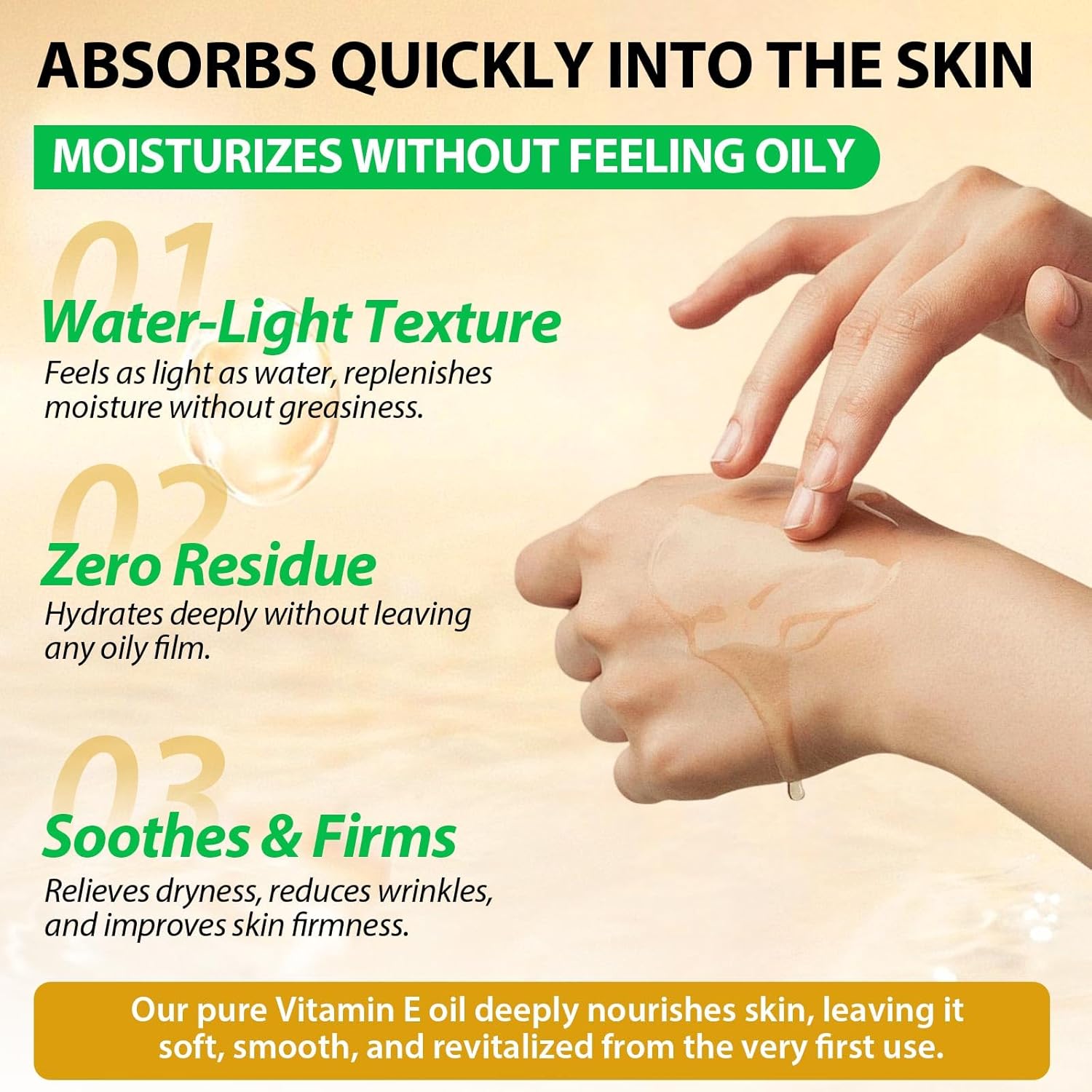 Nourishes and moisturizes the skin: It retains moisture and provides essential nutrients to the skin, allowing it to regain firmness and elasticity. PURE VITAMIN E OIL: All ingredients contain only undiluted Vitamin E oil, with a concentration of 75,000 IU for intense hydration. Leaves skin soft, elastic and radiant