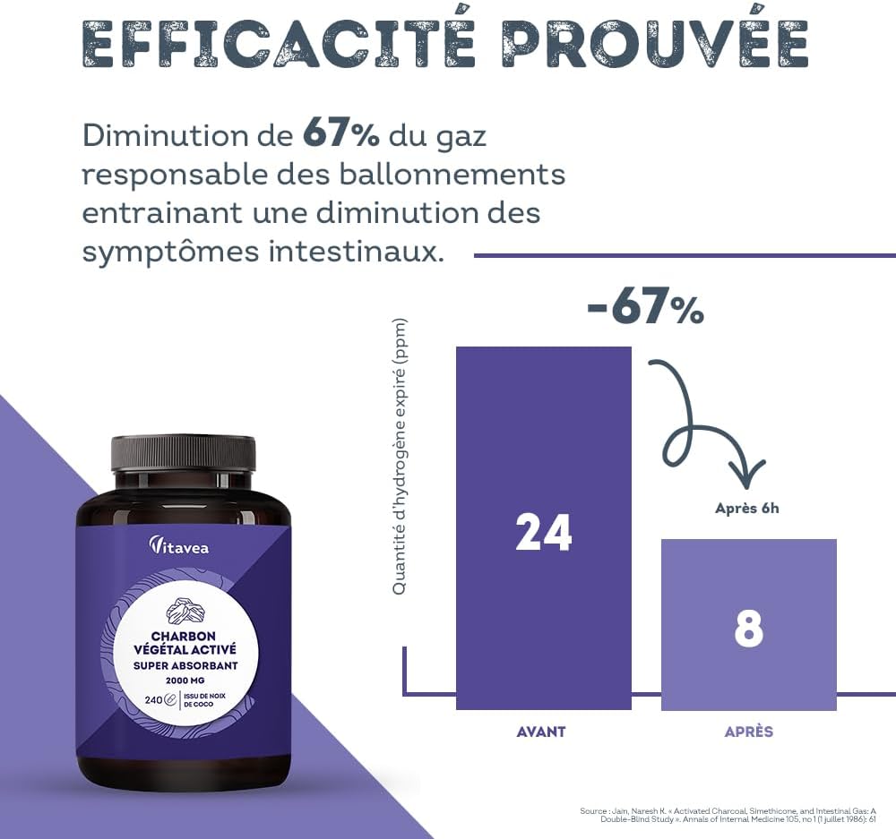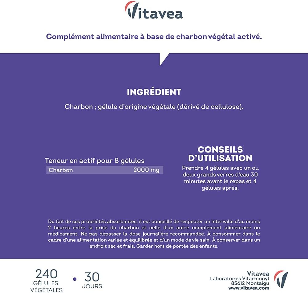 13 reviews for Vitavea Super Absorbent Vegetable Activated Carbon 2000 mg – 240 Capsules – Natural Vegetable Charcoal from Coconut – 1 Month – Made in France