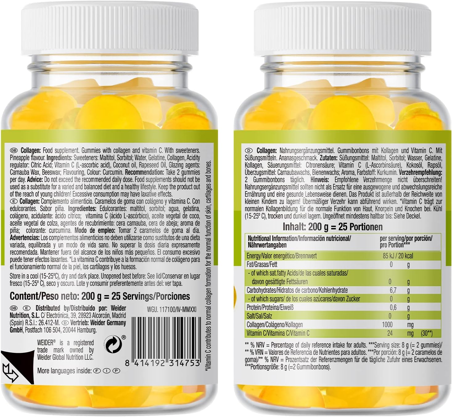 Weider Collagen Gummies – With Collagen for Joints and Cartilage Cartilage – Vitamin C to Protect Bones – Sugar and Gluten Free – 50 Gummies