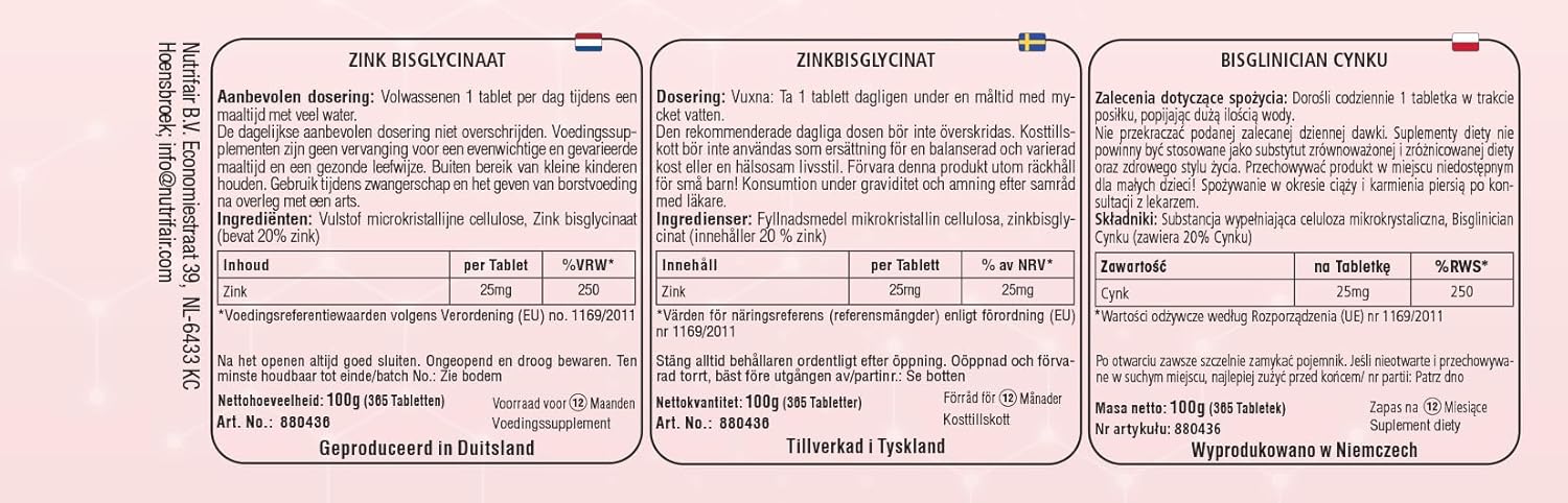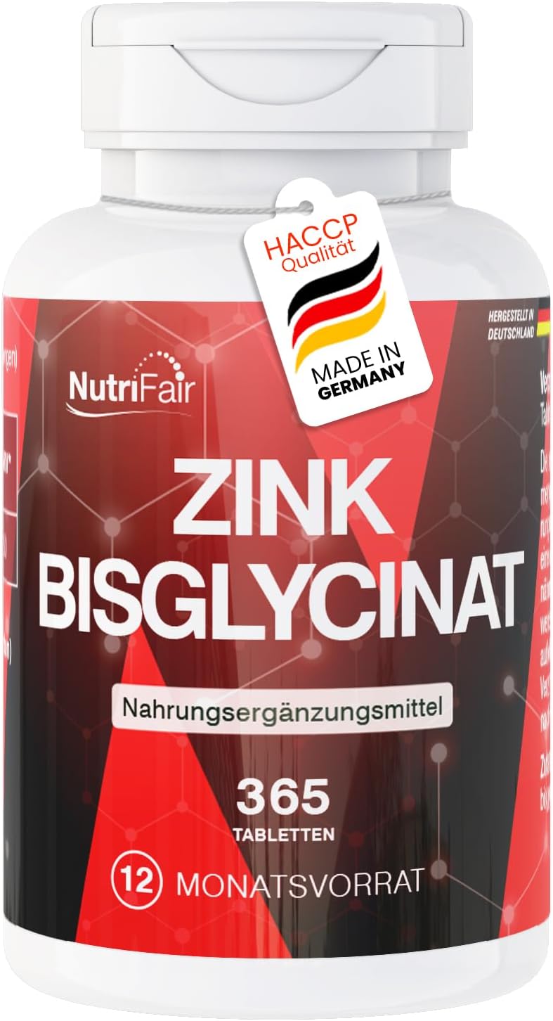 Zinc 25mg – 365 tablets – Zinc Bisglycinate – High dosed – 100% vegan – Laboratory production and testing in Germany – NutriFair | Premium & Fair