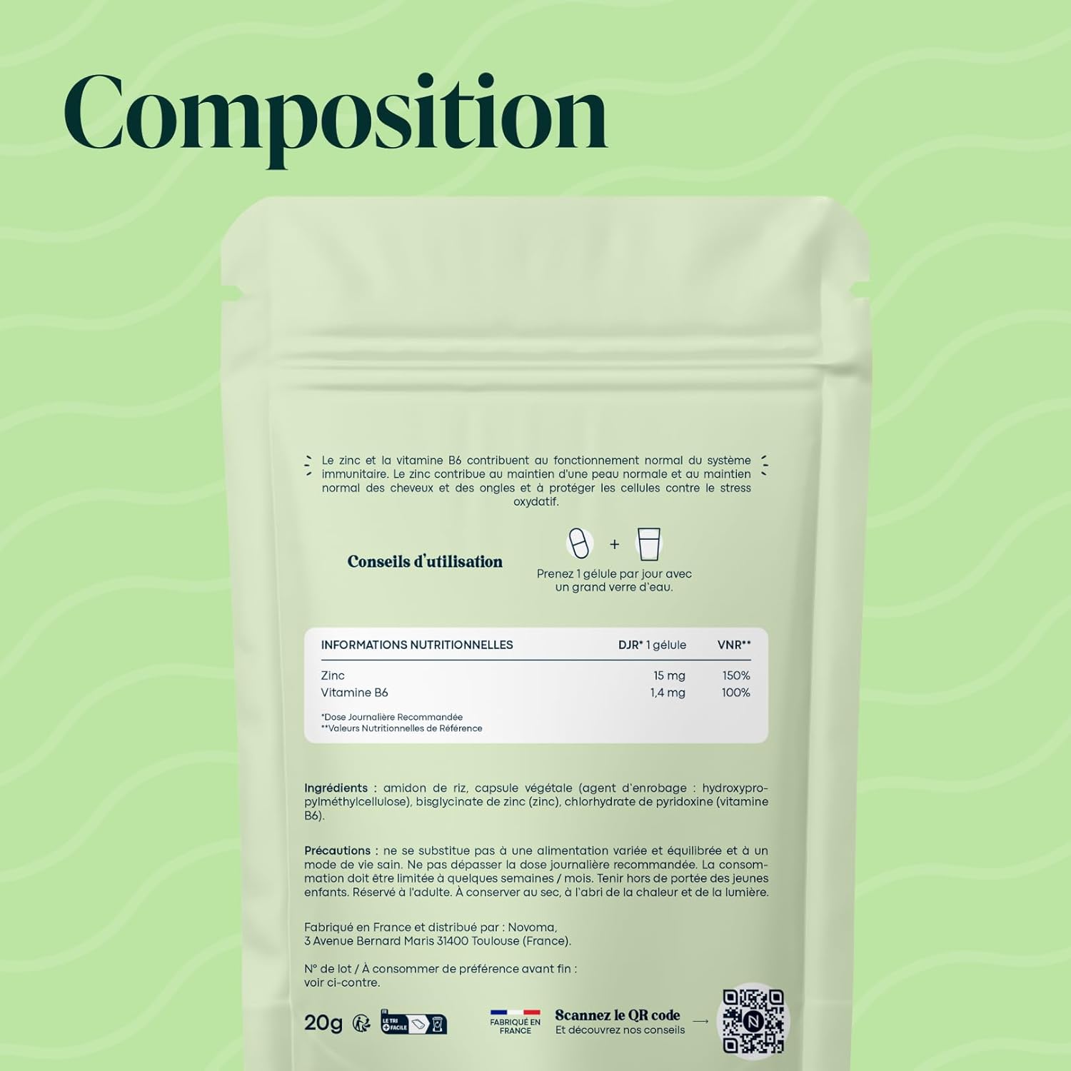 Be the first to review “Zinc Bisglycinate + Vitamin B6, Strengthens Immunity & Fights Acne, Optimal Assimilation, 2 Months Cure, 60 Vegetable Capsules, Food Supplement Made in France, Essentials by Novoma” Cancel reply